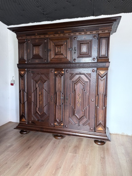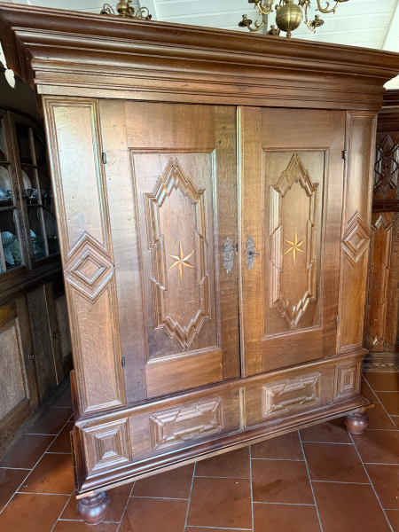 Aufwändig gestalteter Schrank mit etlichen Intarsiensternen.