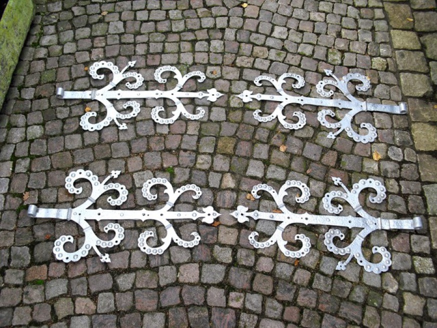 Ein Satz (4 Stück) orginale barocke Torbeschläge aus geschmiedetem Eisen.