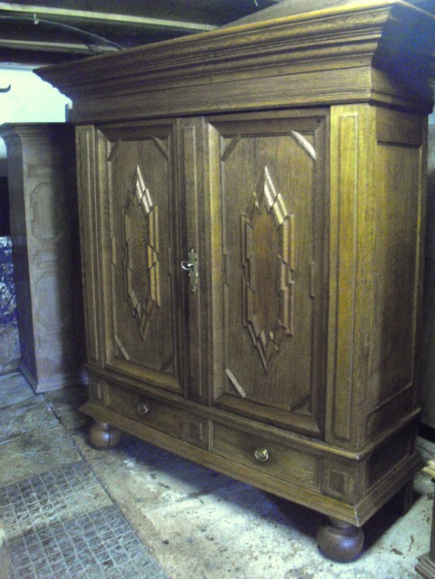 Bei diesem Möbel handelt es sich nicht um einen sog. Hochzeitsschrank da er keine Inschriftenleiste besitzt.